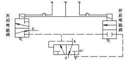 ① 開啟:在二位三通電磁先導閥的手動旋鈕處于與縱軸平行的“一”位置情況下,旋轉二位三通電磁先導閥的手動旋鈕,實現(xiàn)開啟手動操作,動作程序如自動開啟程序。