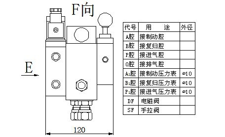 自動(dòng)剎車(chē):電磁閥線圈處于失電狀態(tài),手拉閥SF1、SF2、SF3往里推至自動(dòng)狀態(tài),過(guò)濾后壓縮氣體從進(jìn)氣腔(P腔)進(jìn)入集成塊。當(dāng)接收到停機(jī)指令時(shí),制動(dòng)電磁閥DFA得電開(kāi)閥,使壓縮氣體進(jìn)入制動(dòng)腔(A腔), 從而實(shí)現(xiàn)對(duì)制動(dòng)器的投入, 加速機(jī)組的制動(dòng)停機(jī);