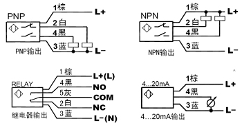 2、信號輸出:PNP,NPN,繼電器,模擬量(4~20mA