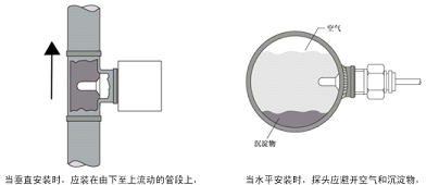基于熱式原理,在封閉的探頭內包含兩個電阻,其中一個被加熱作為探測電阻,另一個未被加熱作為基準電阻,當介質流動時,加熱電阻上的熱量被帶走。電阻值被改變。兩個電阻差值被用作判斷流速的依據。