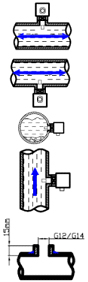 當安裝在水平管道的下端時,應(yīng)保證管道底部沒有沉淀物,以免探頭被沉淀物覆蓋而無法與探頭充分接觸。